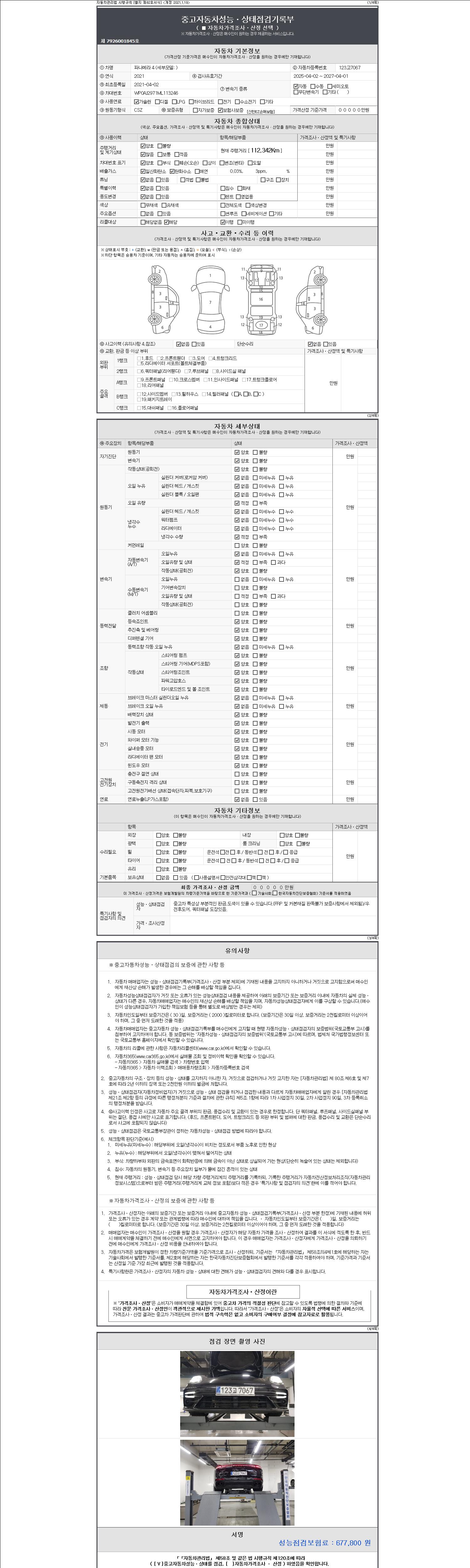 | 주행거리 | 112,314 km | 차량번호 | 123고7067 | 사고유무 | 성능기록부 참조 | 제시번호 | 제 2147483647 호 |
