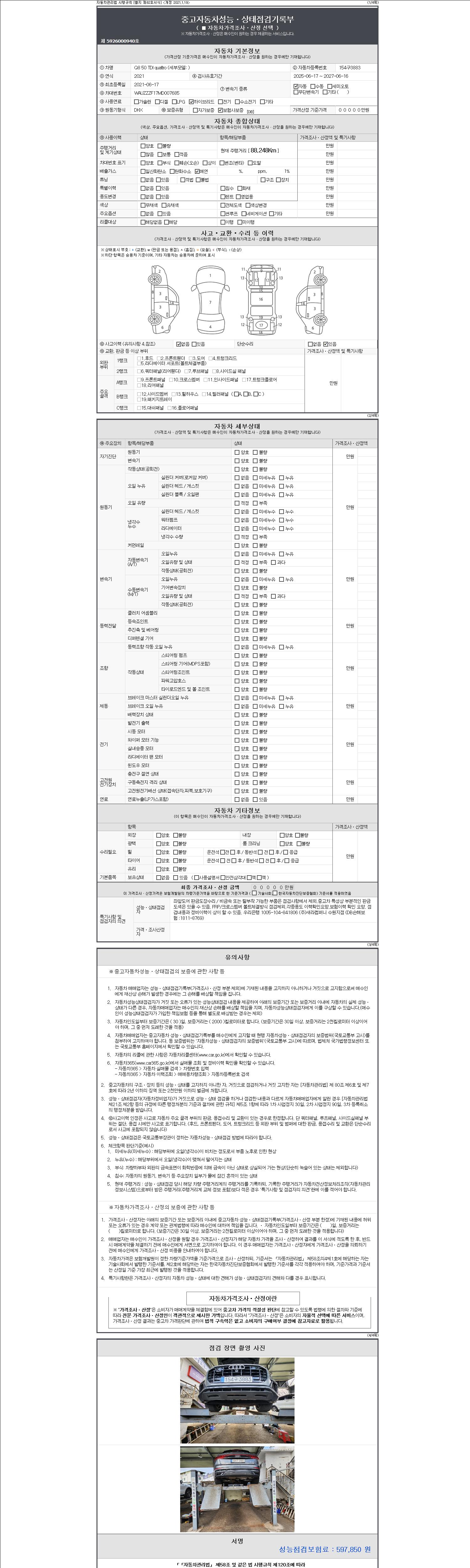 - 2. 차량 등록증이나 성능점검지 등을 상담자에게 요청및 확인하시고 사전에 미리 점검 하시기를 권유드립니다.