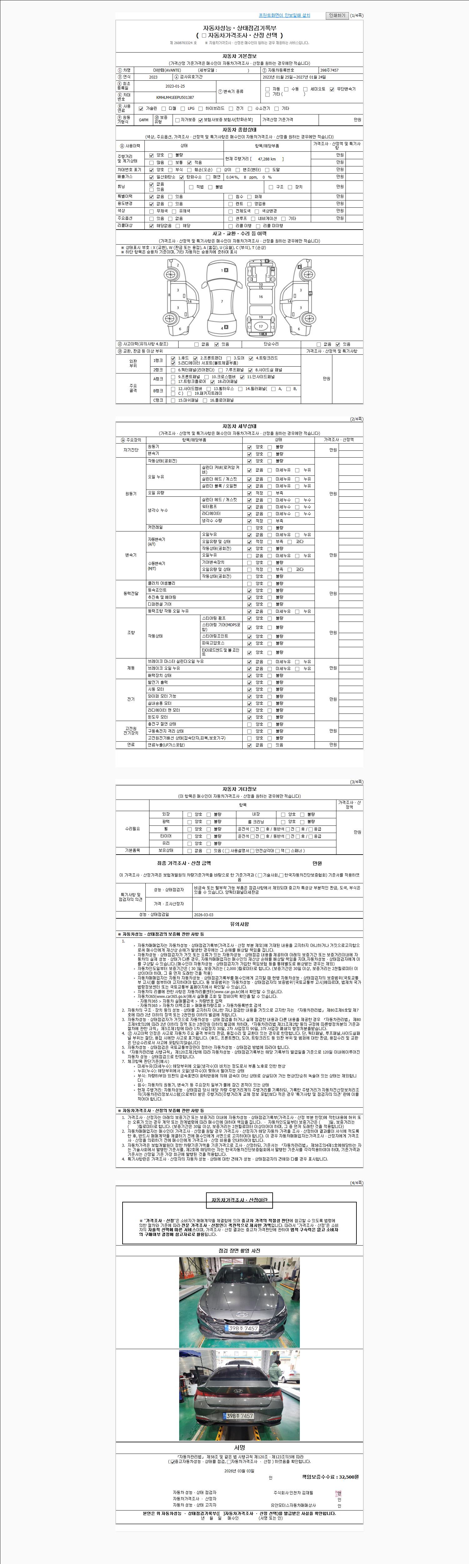 - 2. 차량 등록증이나 성능점검지 등을 상담자에게 요청및 확인하시고 사전에 미리 점검 하시기를 권유드립니다.