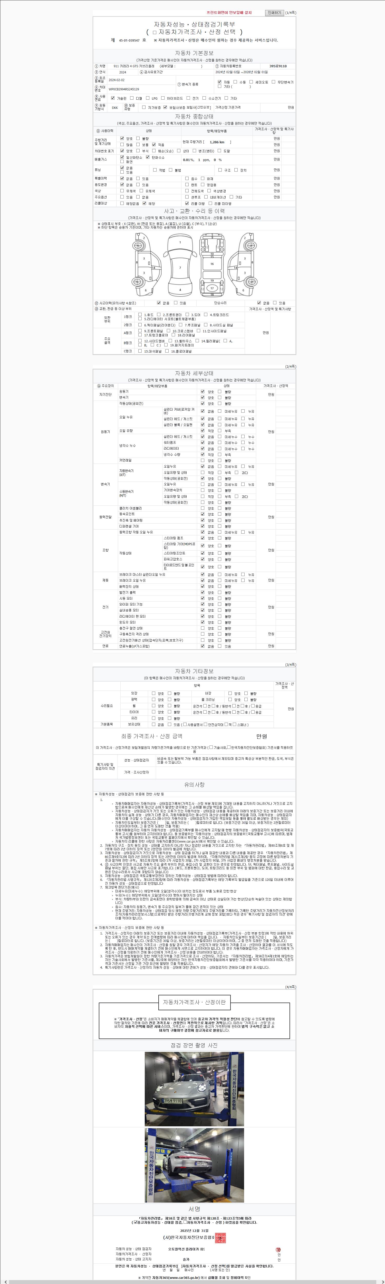 | 주행거리 | 1,277 km | 차량번호 | 395로9110 | 사고유무 | 성능기록부 참조 | 제시번호 | 제 2147483647 호 |