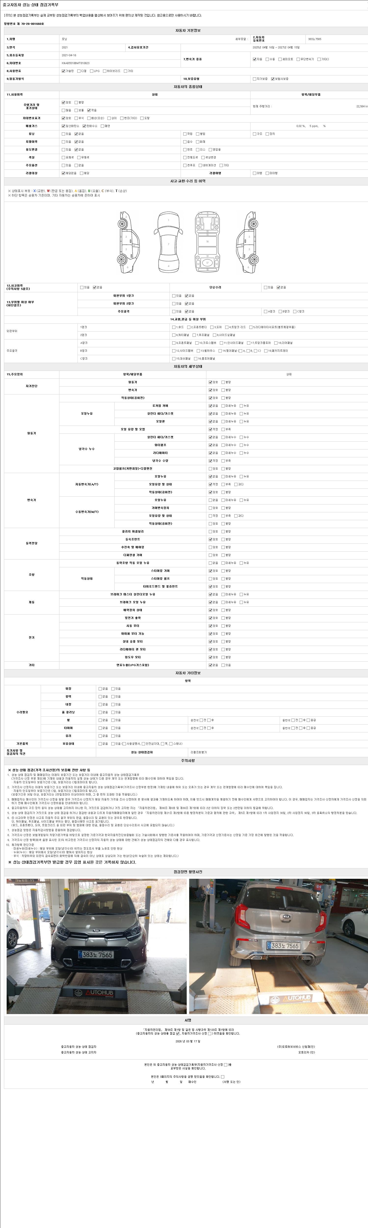- 2. 차량 등록증이나 성능점검지 등을 상담자에게 요청및 확인하시고 사전에 미리 점검 하시기를 권유드립니다.